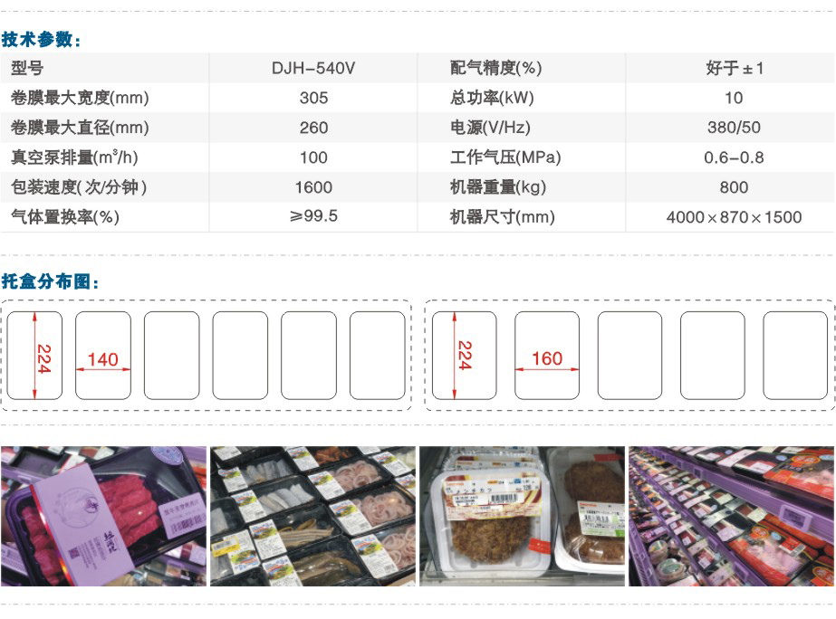 设备适用于冷鲜肉气调保鲜包装、鸡鸭卤肉制品气调保鲜包装、熟食气调保鲜包装、牛羊猪肉气调保鲜包装、奶酪气调保鲜包装、果蔬气调保鲜包装等。